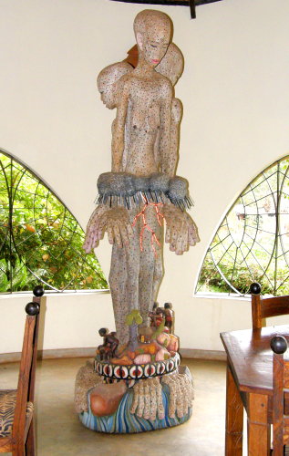 One of the first and most prominent pieces of artwork that we came to at Mua Mission is a statue of “Protective Spirits of Namalikhate,” made by local artist Thomas Mpira.