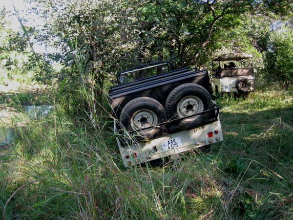 Some of those other vehicles blocked our way out, and everything got quite exciting when our vehicle slipped off the edge of the embankment, leaning into the ravine where the lions were feasting. It felt like we were dangerously close to rolling over into the stream, and the driver had us all get out (!) and stand with the vehicle between us and the lions. So we ended up on a walking safari about 20 yards from a pride of lions. When we got out, I saw that the vehicle was tipped far enough that one of the front tires was about a foot off of the ground, but dad’s picture of the vehicle makes the situation look much less exciting than it felt.
