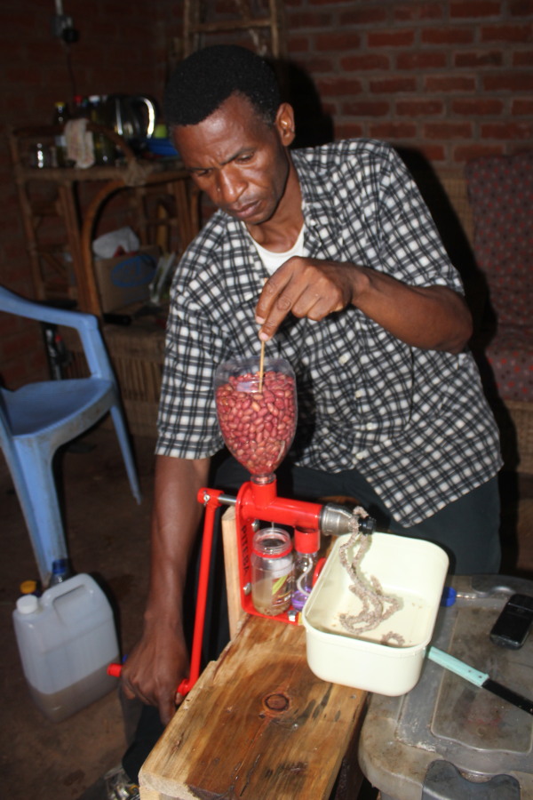 We set up a cooperative with everyone who works on the property, giving each person duties related to acquiring peanuts, pressing the oil, packaging it, and selling it, and after two months everyone made about $10 each. So it works pretty well, but profit margins are very slim.